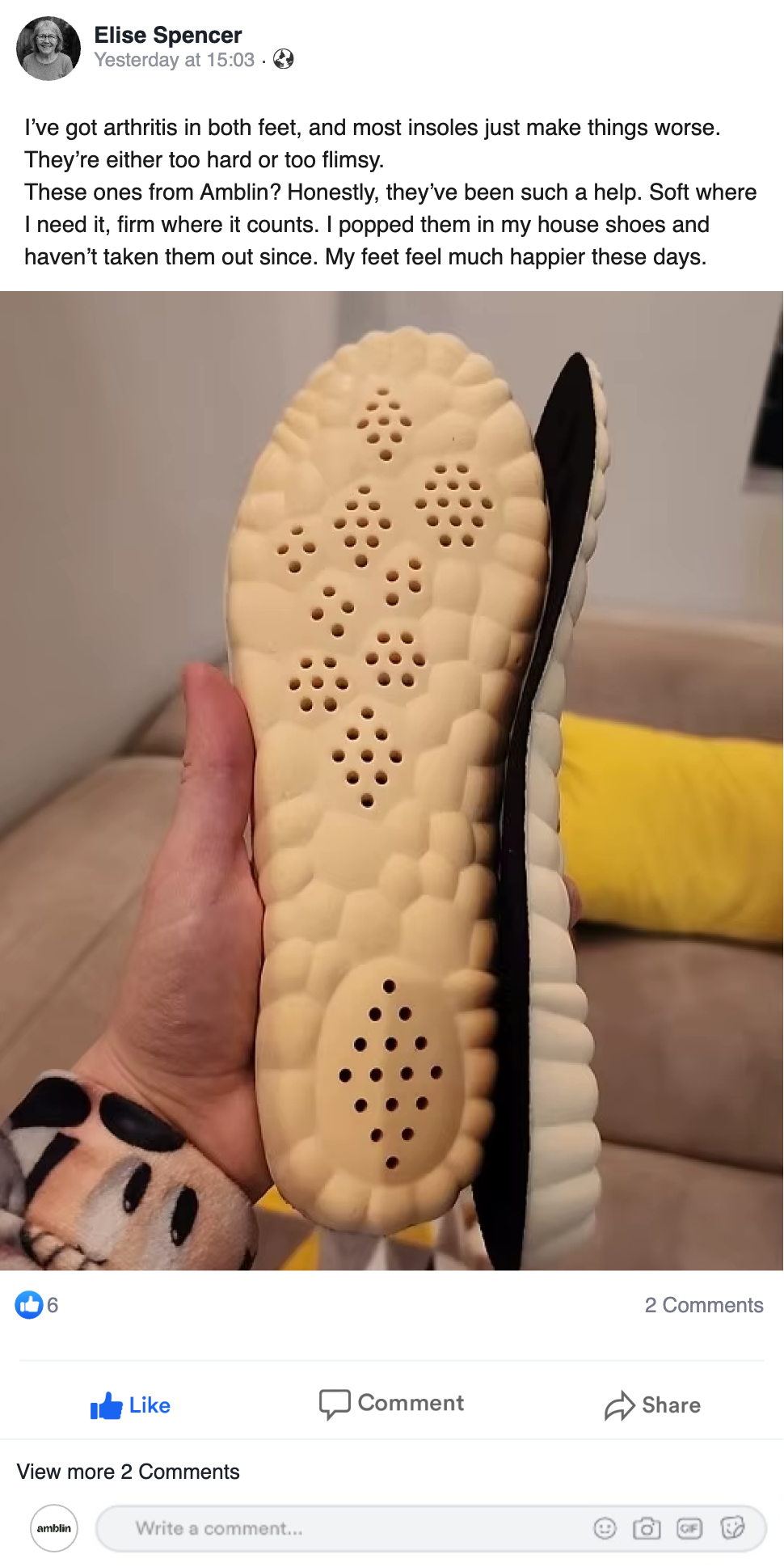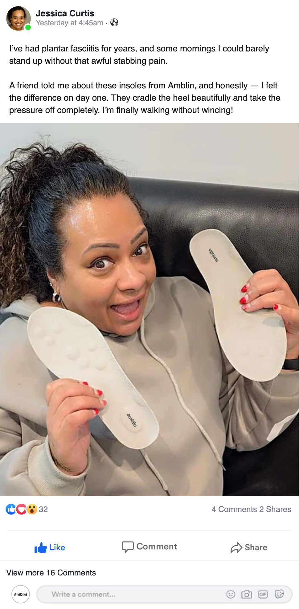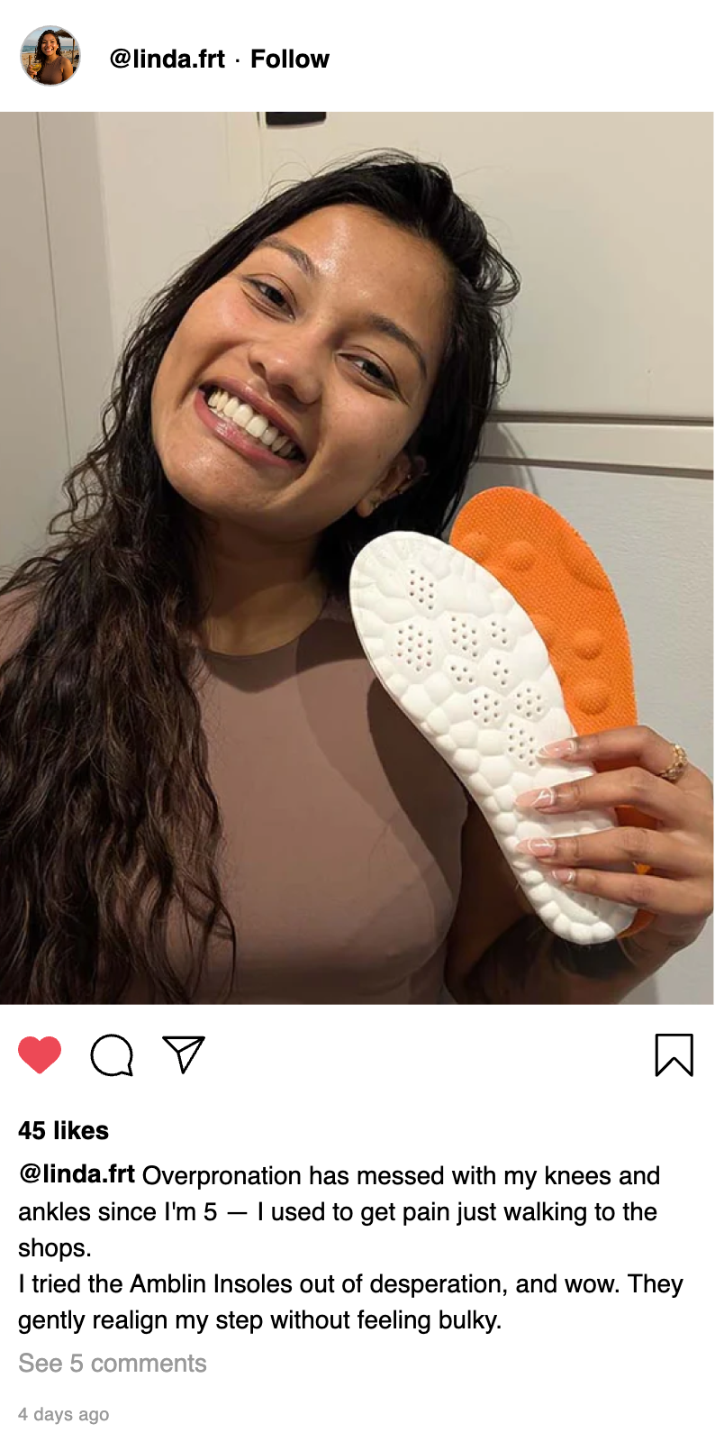 I recommend amblin Insoles because they relieve pressure on the arches, reduce inflammation, and improve alignment. These three elements are necessary for long-term well-being.